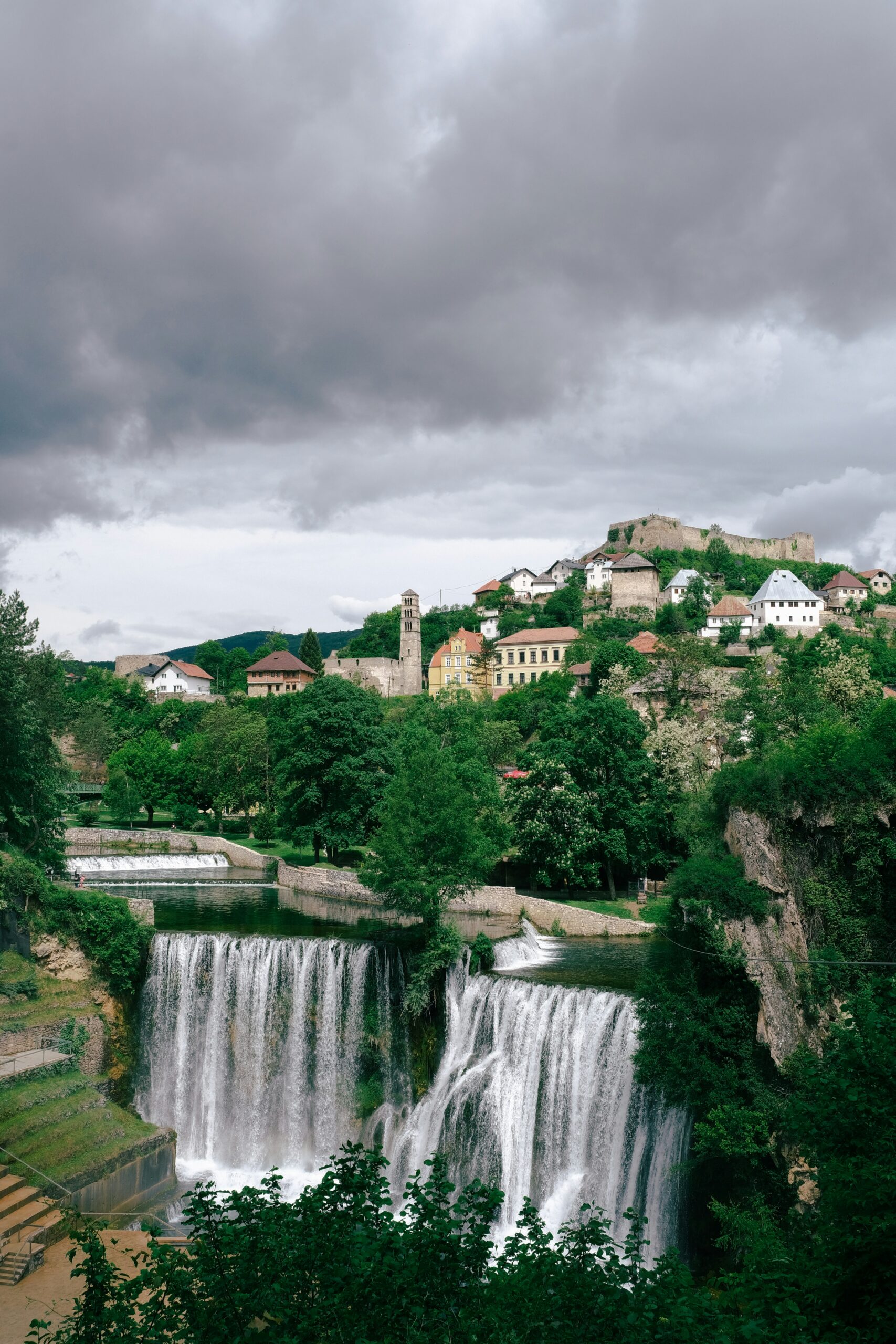 A cidade se construiu em torno da convergência dos rios Pliva e Vrbas. E é exatamente nesse ponto que se encontra um dos cenários mais emblemáticos da Bósnia: uma cachoeira que não está escondida na natureza, mas inserida no centro urbano, como parte orgânica da paisagem cotidiana.